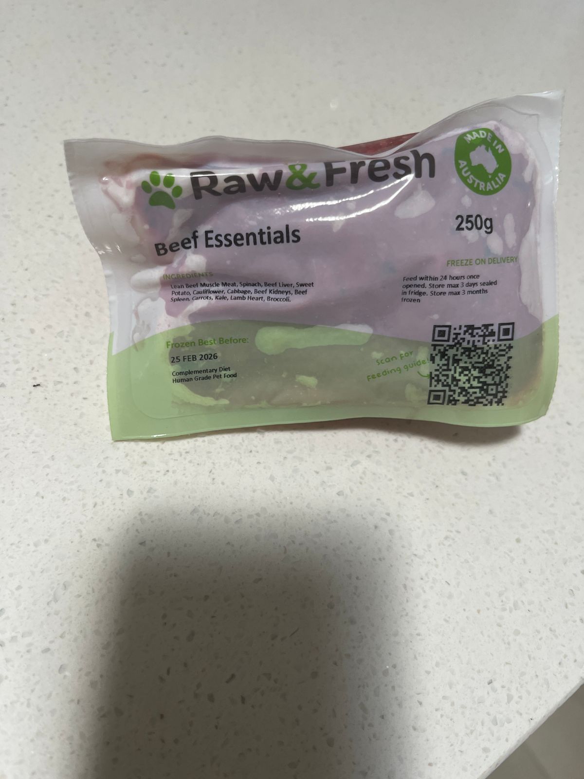 We recommend you freeze all products upon receiving your delivery. You can put aside any meals into the fridge that you intend to feed within the first couple of days.