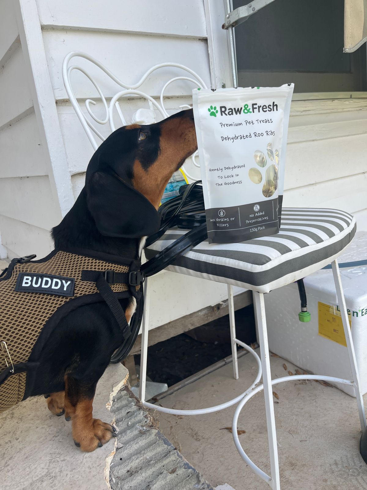We're absolutely delighted to hear that Buddy is such a big fan of our Dehydrated Kangaroo Ribs and it sounds like Buddy not only enjoys eating them but has turned them into a fun treasure hunt game too!