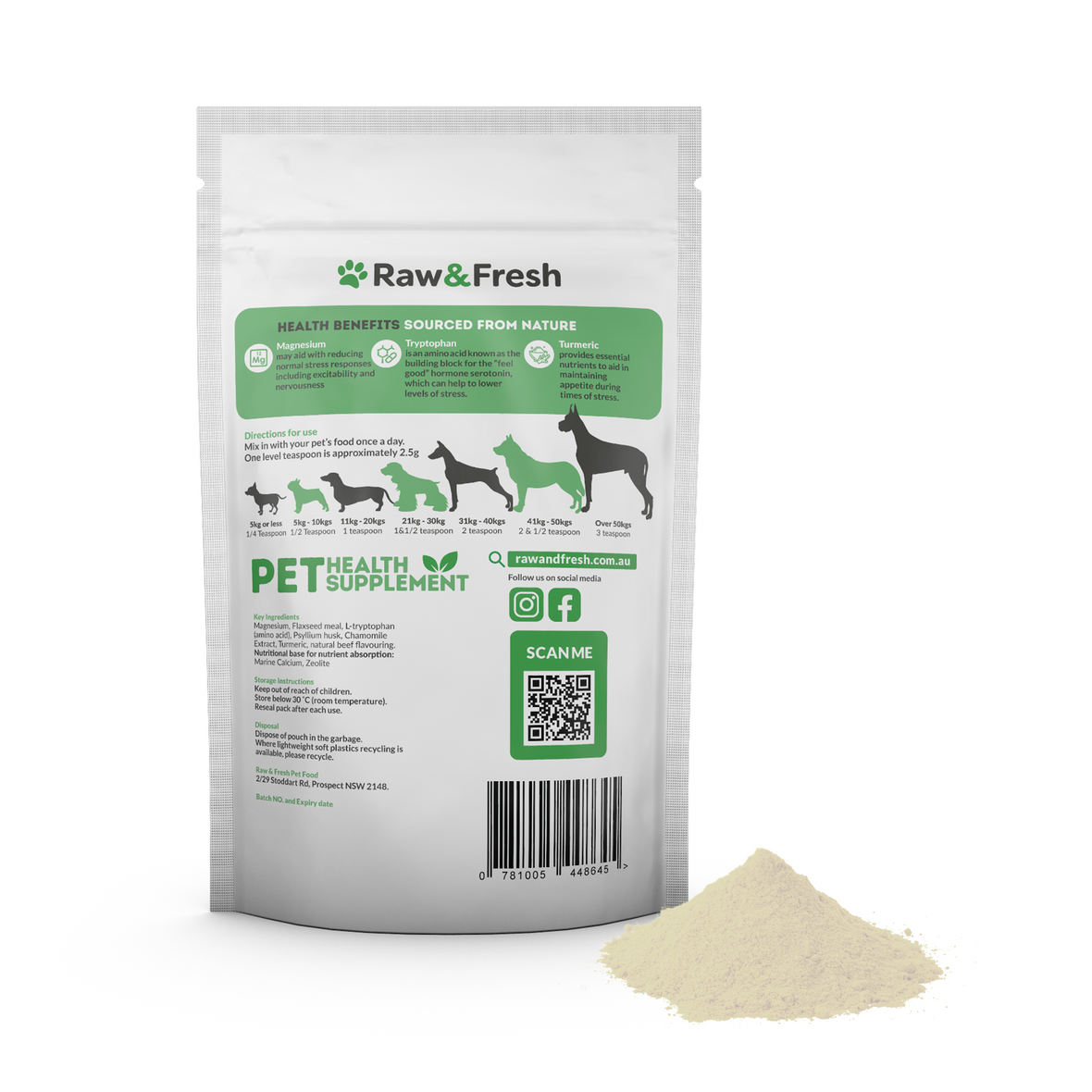 Stress can have a negative impact on your pets gut health which is a concern because the digestive system makes up 70% of your dogs immune system so its the front line of defence. We have included prebiotics to promote a healthy gut and during prolonged periods you can combine with Raw & Fresh Gut Booster Supplement for additional benefits.